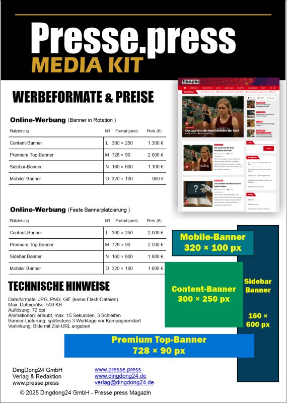 Ihre Werbebanner in einem hochwertigen redaktionellen Umfeld – einfach, flexibel und sichtbar.