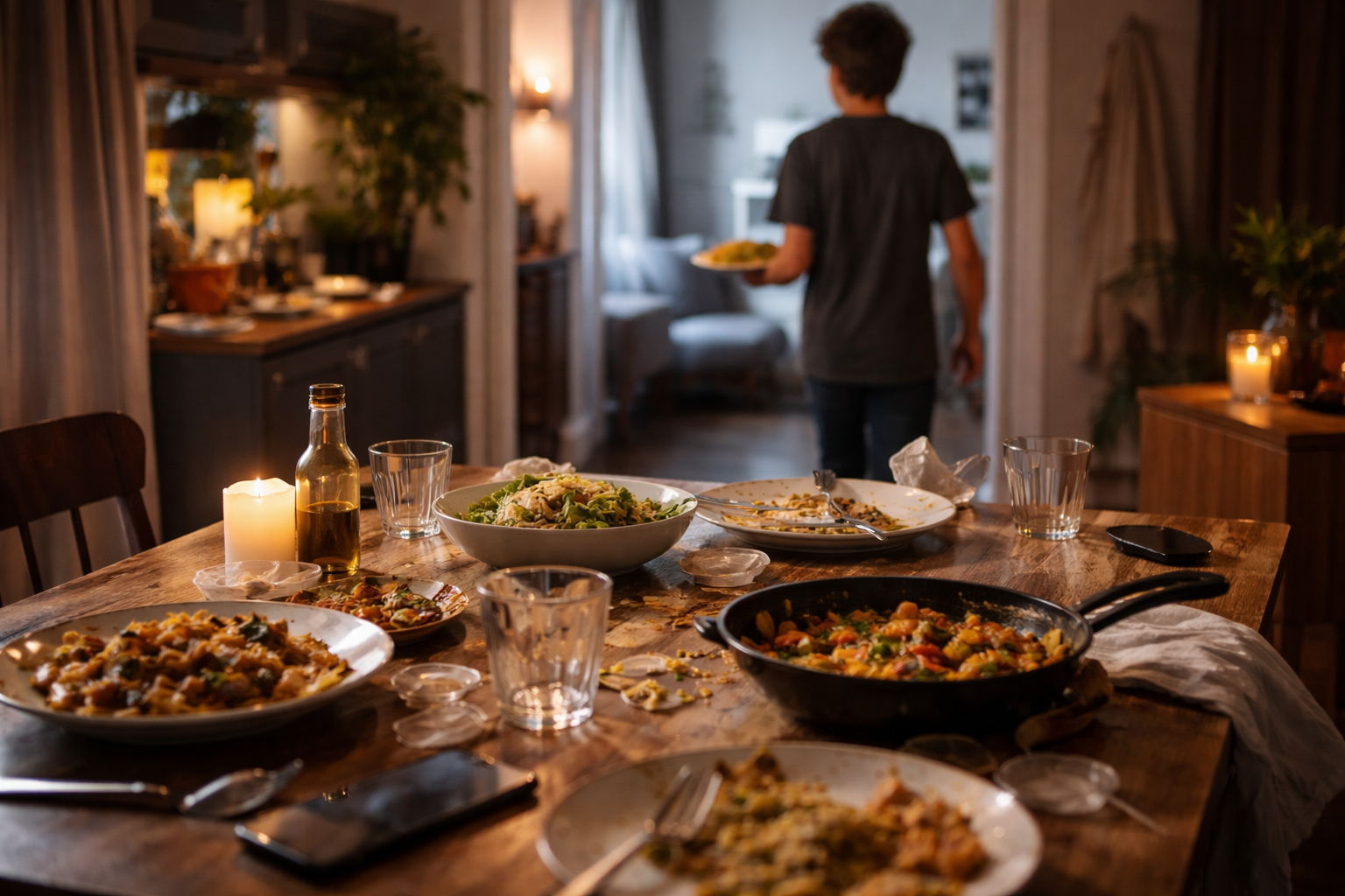 Es gibt Geräusche, die früher zum Abend gehörten wie das gedimmte Licht und der Duft von warmem Essen, Besteck, das an Teller stößt, Stühle, die über den Boden rutschen und Stimmen, die sich überlappen, weil alle gleichzeitig etwas erzählen wollen. Heute hört man in vielen Wohnungen stattdessen andere Klänge wie die des klickenden Handys, dem leisen Summen eines Tablets, den Schritten auf dem Flur, die sich verlieren, weil jemand den Teller ins eigene Zimmer trägt. Der Tisch steht zwar noch da, aber er ist so seltsam still geworden.