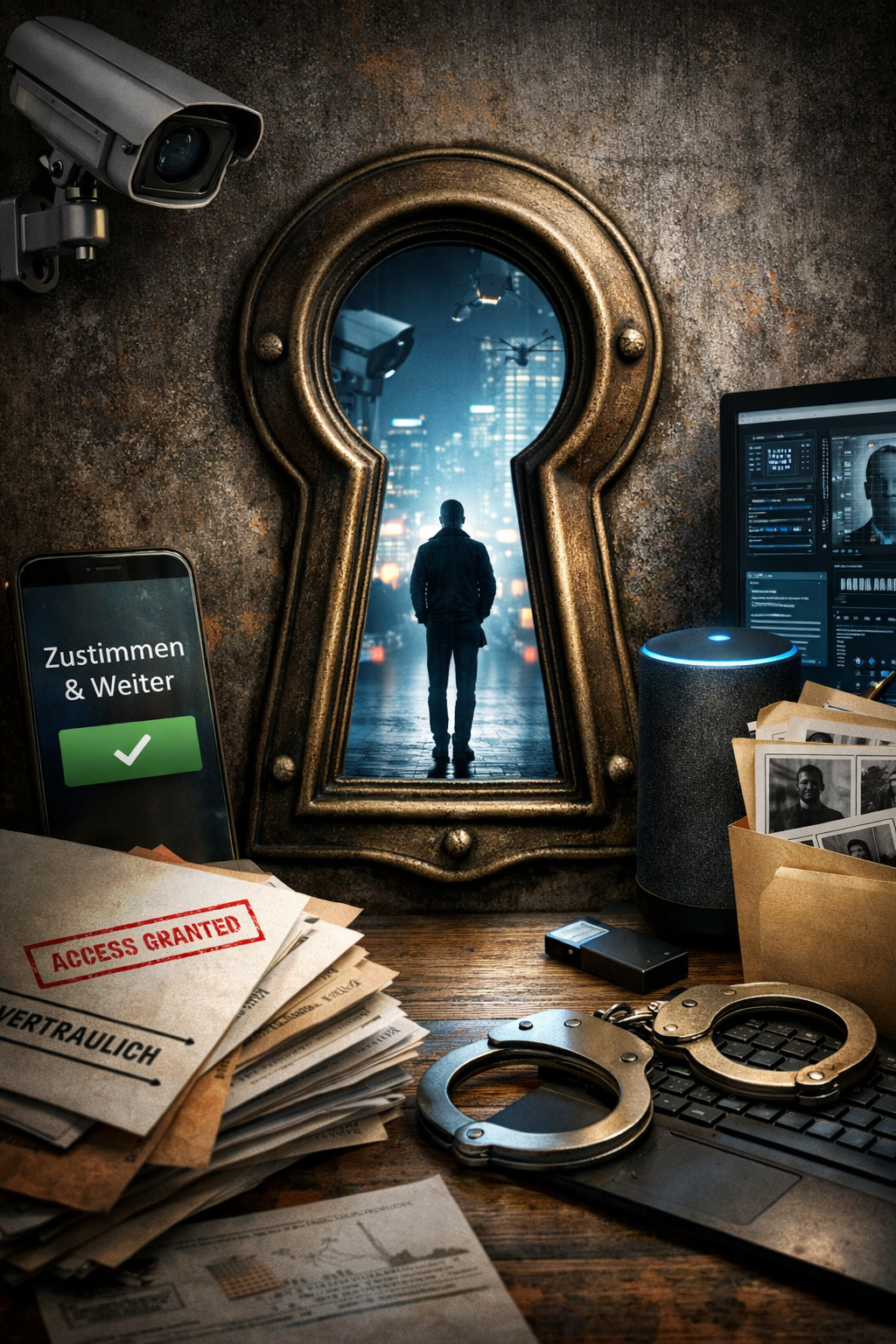 Ist es nicht merkwürdig? Früher klang Überwachung nach Sirenen, nach kaltem Neonlicht in Amtsfluren, nach „Die da oben“ und „Wir da unten“. Heute klingt sie nach Komfort, nach „Zustimmen und weiter“ und nach einem kleinen grünen Haken, der uns signalisiert, dass alles gut ist, und wir jetzt reindürfen. Doch während wir rein dürfen, gehen wir auch ein Stück weit raus, raus aus der Idee, dass Privatsphäre etwas ist, das man nicht erklären muss, weil es selbstverständlich ist.